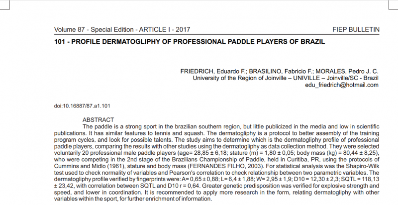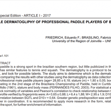 paddle players, comparing the results with other studies using the dermatogliphy as data collection method.